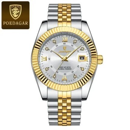 POEDAGAR 930 Men’s New Luxury Luminous Date Week Stainless Steel Quartz Watch For Men
