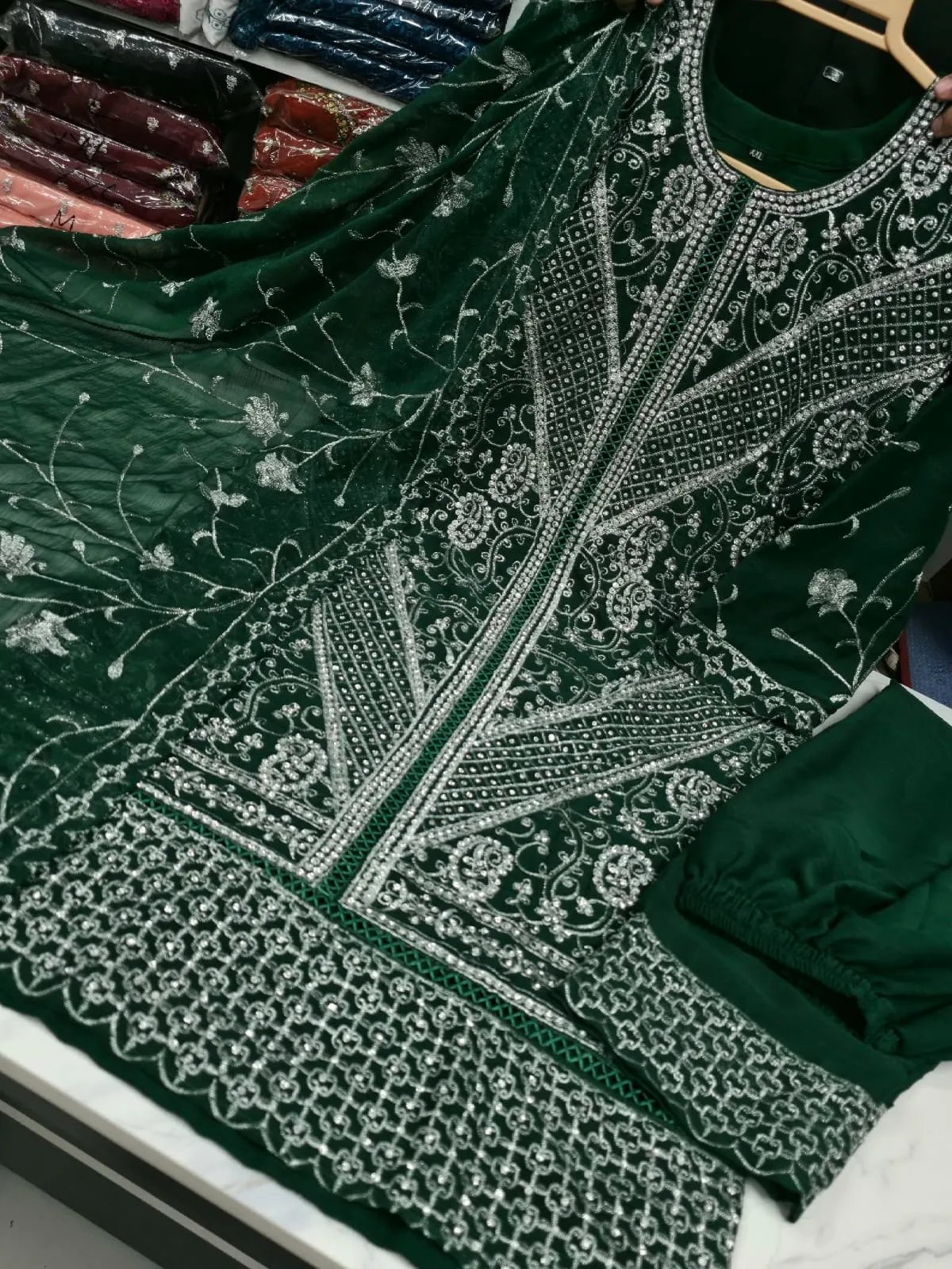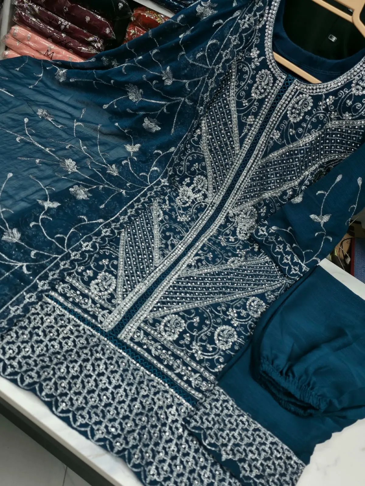 প্রিমিয়াম হেভি এমব্রয়ডারি সালোয়ার কামিজ থ্রি পিস সেট উইথ এলিগেন্ট দুপাট্টা