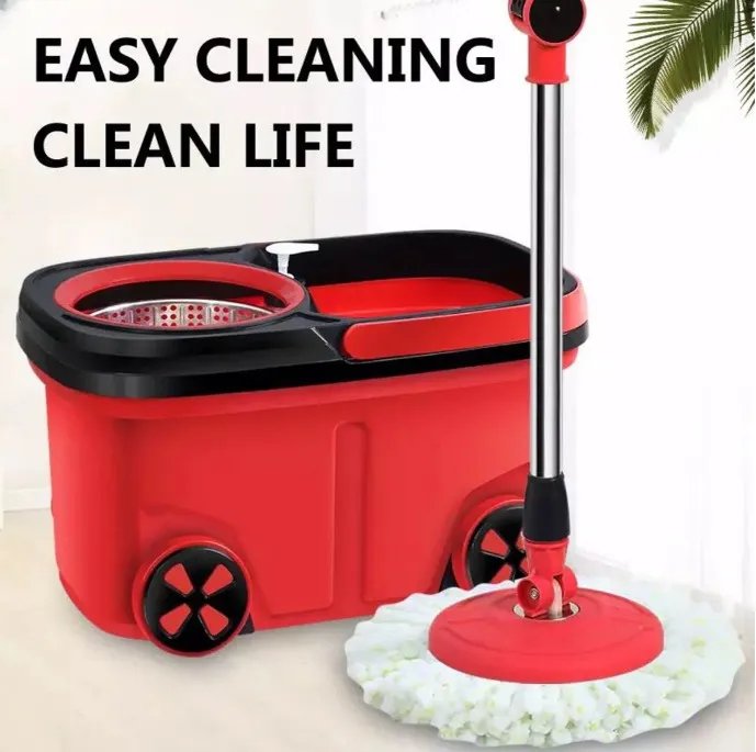 360° auto spin mop bucket home cleaning cotton mop হাত নোংরা না করে ঘর মোছার আধুনিক উপায়! মপ-বালতি সিস্টেমে নিম্নলিখিত বৈশিষ্ট্য ও সুবিধাগুলিমপের অতিরিক্ত জল বের করার জন্য বালতিতে একটি স্পিনিং মেকানিজম বা চাকা (হুইল) থাকে। হাত দিয়ে মপ নিংড়ানোর ঝামেলা ও কষ্ট দূর হয়।মপ হেডটি মাইক্রোফাইবার দিয়ে তৈরি হয়, যা জল দ্রুত শোষণ করে এবং ময়লা ও জীবাণু কার্যকরভাবে তুলে নিতে পারে।চাকাগুলি, বালতি জল ভর্তি অবস্থায় সহজে এক ঘর থেকে অন্য ঘরে টেনে নিয়ে যেতে সাহায্য করে।স্পিনিং মেকানিজমের মাধ্যমে মপ হেডে কতটা জল থাকবে তা নিয়ন্ত্রণ করা যায়।হ্যান্ডেল সাধারণত উচ্চতা অনুযায়ী ছোট-বড় করা যায়, ফলে কোমর বাঁকানোর প্রয়োজন হয় না।বালতিটি সহজে বহন ও টেনে নিয়ে যাওয়ার জন্য হ্যান্ডেল রয়েছে। এটি কেন কিনবেন?ঘরের কোণে পৌঁছানো সহজ হয়কম পরিশ্রম হয় ব্যবহারিক সুবিধাদীর্ঘস্থায়ী এবং সাশ্রয়ী