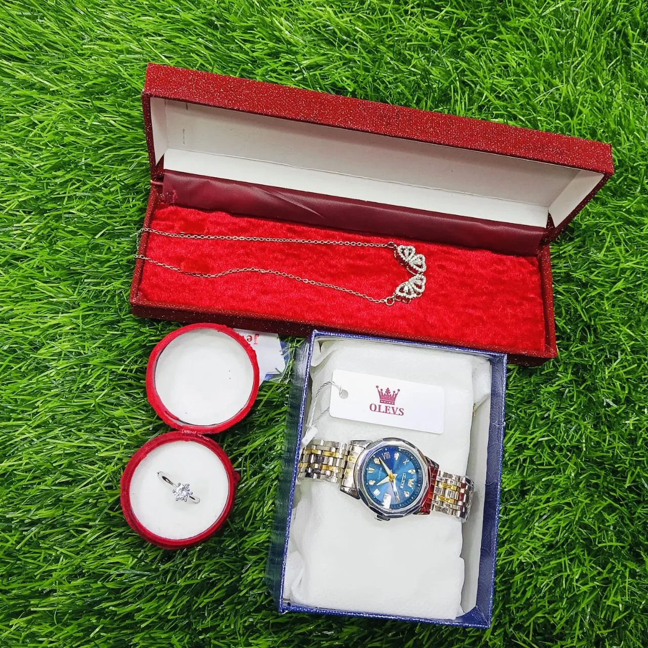 Regal Love Gift Combo – ভালোবাসার রাজকীয় উপহার সেট 💖👑প্রিয়জনের জন্য একটি দারুণ গিফট সেট খুঁজছেন? Regal Love Gift Combo হতে পারে আপনার সেরা পছন্দ! এতে রয়েছে ক্লাসি ওয়াচ, ঝলমলে নেকলেস ও এলিগ্যান্ট রিং—যা ভালোবাসার নিখুঁত প্রতিচ্ছবি।🔹 গিফট সেটের আইটেম:✅ স্টাইলিশ OLEVS ব্র্যান্ডের ঘড়ি – ব্লো ডায়াল ও গোল্ড-সিলভার কম্বিনেশনে ক্লাসিক ডিজাইন, যা প্রতিদিনের ব্যবহার বা স্পেশাল ইভেন্টের জন্য পারফেক্ট।✅ সিলভার প্লেটেড নেকলেস – হৃদয় আকৃতির ঝলমলে ডিজাইন, যা প্রেম ও সৌন্দর্যের প্রতীক।✅ সিম্পল সলিটেয়ার রিং – দ্যুতি ছড়ানো ডিজাইন, যা সব ধরনের স্টাইলের সঙ্গে মানিয়ে যাবে।🎁 কেন এটি উপহার হিসেবে পারফেক্ট?✨ রাজকীয় ও রোমান্টিক ডিজাইন – প্রতিটি আইটেমই বিলাসবহুল ও ট্রেন্ডি, যা ভালোবাসার মানুষকে মুগ্ধ করবে।✨ দীর্ঘস্থায়ী মান – উন্নতমানের উপাদান দিয়ে তৈরি, যা দীর্ঘদিন ব্যবহার করা যাবে।✨ সব ধরনের উপলক্ষে পারফেক্ট – জন্মদিন, এনিভার্সারি, ভ্যালেন্টাইনস ডে বা বিশেষ মুহূর্তে এক অনন্য উপহার।🎀 সীমিত স্টক! আজই অর্ডার করুন এবং আপনার প্রিয়জনকে দিন Regal Love Gift Combo-এর স্পেশাল সারপ্রাইজ! 🎀 💝
