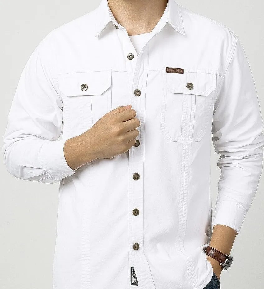 Full sleeves double pocket panel Shirt Fabric : Kaizar cotton/twillsG.S.M :160+Vary soft & comfortableSize: M,L,XL,XXL Size measurementM = Chest 40″, Length 28″L = Chest 42″, Length 29″XL = Chest 44″, Length 30″XXL = Chest 46″, Length 31″