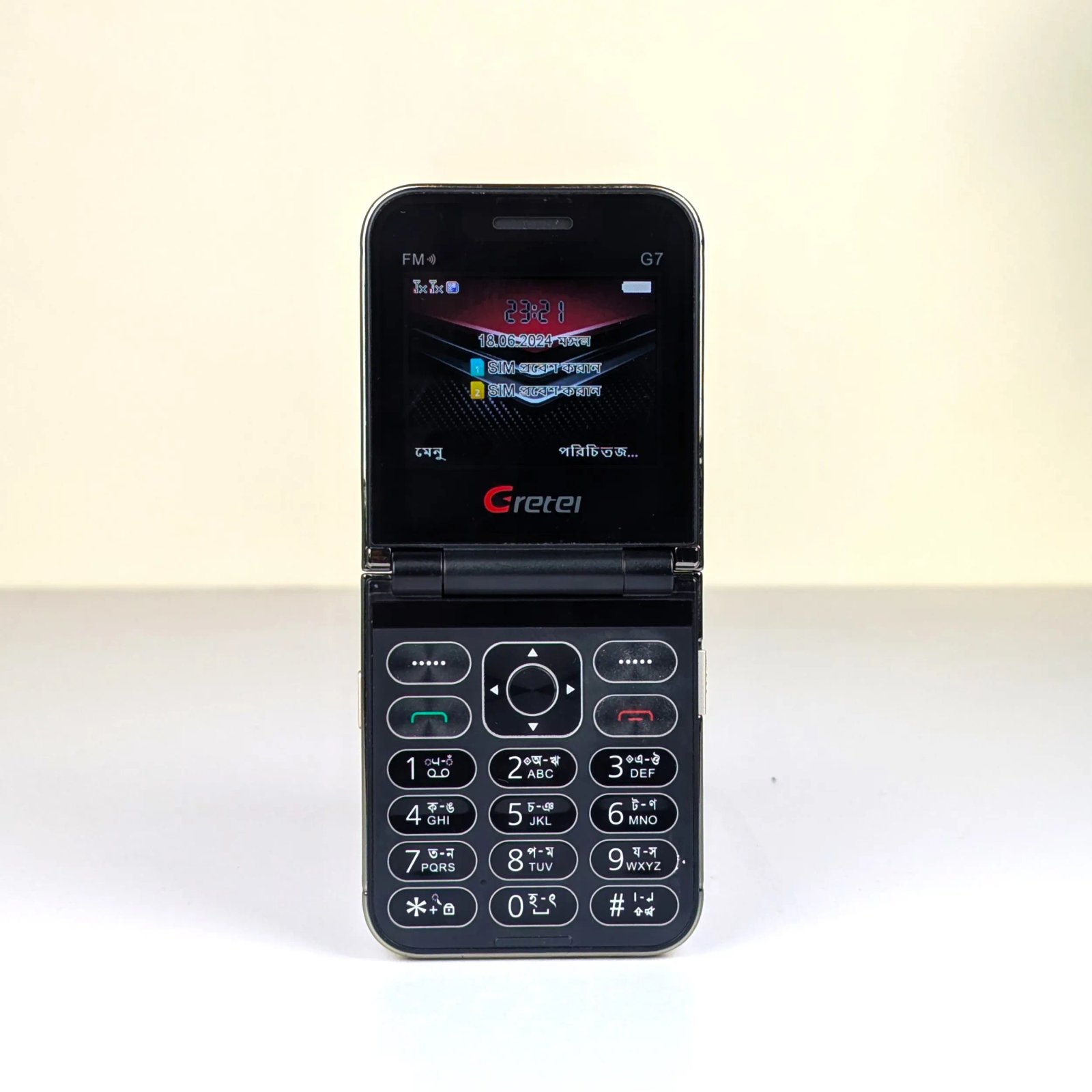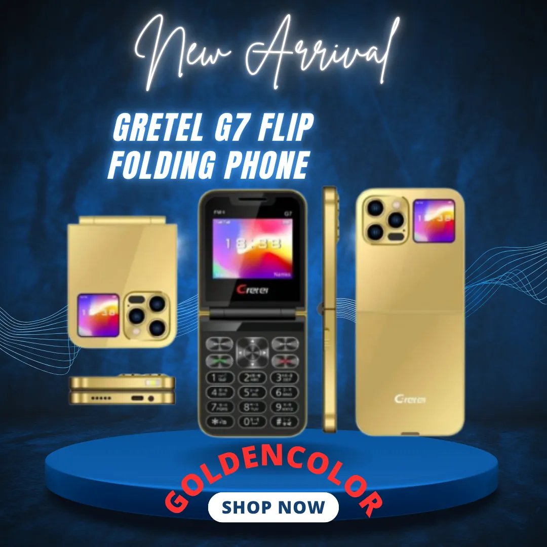 Gretel G7 Flip Folding Phone Dual Display (Gold)(ফ্লিপ ডিজাইন | ডুয়াল ডিসপ্লে | ডুয়াল সিম সাপোর্ট | আভিজাত্যপূর্ণ গোল্ড কালার | দীর্ঘস্থায়ী ব্যাটারি)পণ্যের সারসংক্ষেপGretel G7 Flip Folding Phone একটি ক্লাসিক স্টাইলের আধুনিক ফিচার ফোন, যা ডুয়াল ডিসপ্লে প্রযুক্তি এবং আভিজাত্যপূর্ণ গোল্ড কালার ফিনিশ দিয়ে তৈরি। ফ্লিপ ফরম্যাট ডিজাইন ফোনটিকে দিয়েছে ভিন্নতা, আর ডুয়াল সিম সাপোর্ট, নির্ভরযোগ্য ব্যাটারি ব্যাকআপ এবং মাল্টিমিডিয়া ফিচার একে করে তুলেছে দৈনন্দিন ব্যবহারের জন্য এক আদর্শ সমাধান।প্রধান বৈশিষ্ট্যস্টাইলিশ ফ্লিপ ডিজাইনআধুনিক ও ক্লাসিক ফ্লিপ স্টাইলের ফোনটি ব্যবহারকারীদের জন্য আরামদায়ক এবং আকর্ষণীয় অভিজ্ঞতা নিয়ে আসে।ডুয়াল ডিসপ্লে সুবিধাবাইরের এবং ভেতরের দুইটি ডিসপ্লে থাকায় সহজেই কল, মেসেজ ও নোটিফিকেশন চেক করা যায়।ডুয়াল সিম সাপোর্টএকসাথে দুটি সিম ব্যবহারের সুবিধা থাকায় ব্যক্তিগত ও অফিসের যোগাযোগ সহজে পরিচালনা সম্ভব।দীর্ঘস্থায়ী ব্যাটারিশক্তিশালী ব্যাটারি ব্যাকআপ থাকায় টক-টাইম ও স্ট্যান্ডবাই টাইমে সর্বোচ্চ নিশ্চয়তা পাওয়া যায়।মাল্টিমিডিয়া ফিচারFM রেডিও ও মিউজিক প্লেয়ার যুক্ত থাকায় এটি বিনোদনের জন্যও একটি উপযুক্ত ফোন।প্রযুক্তিগত স্পেসিফিকেশনবৈশিষ্ট্যবিবরণমডেলGretel G7 Flip Folding Phoneডিজাইনফ্লিপ ফোল্ডিং, ডুয়াল ডিসপ্লেসিম সাপোর্টডুয়াল সিমডিসপ্লেইনার + আউটার ডিসপ্লেব্যাটারিদীর্ঘস্থায়ী রিচার্জেবল ব্যাটারিমাল্টিমিডিয়াFM রেডিও, মিউজিক প্লেয়ারকালারগোল্ড (Gold)প্যাকেজ কনটেন্টGretel G7 Flip Folding Phone (Gold)ব্যাটারিচার্জারব্যবহার নির্দেশিকাকার জন্য উপযুক্ত?যারা ক্লাসিক ফ্লিপ ডিজাইন পছন্দ করেনডুয়াল সিম ব্যবহার করতে চানআভিজাত্যপূর্ণ গোল্ড কালার ফোন ব্যবহার করতে ইচ্ছুকযারা সহজ, নির্ভরযোগ্য ও স্টাইলিশ ফিচার ফোন খুঁজছেনউপসংহারGretel G7 Flip Folding Phone Dual Display (Gold) হলো স্টাইল, আভিজাত্য ও নির্ভরযোগ্যতার এক অনন্য সমন্বয়। ডুয়াল ডিসপ্লে, ডুয়াল সিম সাপোর্ট এবং দীর্ঘস্থায়ী ব্যাটারি একে করে তুলেছে দৈনন্দিন ব্যবহারের জন্য একটি নিখুঁত ফোন। যারা প্রিমিয়াম ডিজাইন এবং কার্যকর ফিচারের সমন্বয় খুঁজছেন, তাদের জন্য এটি হবে একটি পারফেক্ট চয়েস।