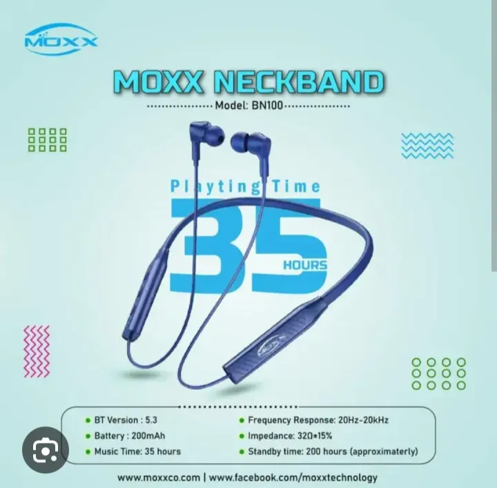 MOXX Wireless Neckband (BN‑100)পণ্যের বিবরণMOXX BN‑100 একটি উন্নত প্রযুক্তির ব্লুটুথ নেকব্যান্ড, যা অত্যাধুনিক ডিজাইন ও শক্তিশালী পারফরম্যান্সের অনন্য সমন্বয়। যারা দৈনন্দিন জীবনে সাউন্ড কোয়ালিটি, দীর্ঘ ব্যাটারি লাইফ ও আরামদায়ক ব্যবহার চান, তাদের জন্য এটি একটি নির্ভরযোগ্য এবং কার্যকর সমাধান।প্রধান বৈশিষ্ট্যসমূহ🔹 Bluetooth 5.3 প্রযুক্তিনতুন প্রজন্মের ব্লুটুথ ভার্সন ৫.৩ ব্যবহার করা হয়েছে, যা দ্রুত সংযোগ, কম পাওয়ার ব্যবহার এবং স্থিতিশীল সংযোগ নিশ্চিত করে।🔹 দীর্ঘ ব্যাটারি লাইফ২০০ mAh ব্যাটারির মাধ্যমে আপনি একবার চার্জে উপভোগ করতে পারবেন:৩৫ ঘণ্টা পর্যন্ত মিউজিক প্লেব্যাক৩০ ঘণ্টা পর্যন্ত টকটাইম২০০ ঘণ্টা পর্যন্ত স্ট্যান্ডবাই টাইম🔹 টাইপ‑সি ফাস্ট চার্জিংমাত্র ১.৫ ঘণ্টায় ফুল চার্জ হয়ে যায়, যা সময় বাঁচায় এবং ব্যাবহারে সুবিধা দেয়।🔹 উন্নত সাউন্ড কোয়ালিটি২০ Hz – ২০ kHz ফ্রিকোয়েন্সি রেসপন্স ও ৩২Ω ইমপিডেন্স যুক্ত এই নেকব্যান্ড সমৃদ্ধ বেস, স্পষ্ট মিড ও শার্প ট্রেবলের সমন্বয়ে পরিপূর্ণ অডিও অভিজ্ঞতা প্রদান করে।🔹 ম্যাগনেটিক ইয়ারবাড ডিজাইনইয়ারবাডে রয়েছে ইন-বিল্ট ম্যাগনেট, যা ব্যবহার শেষে সহজে আটকানো যায়, এতে করে তার জটলা বা ক্ষতির সম্ভাবনা কমে যায়।🔹 হালকা ও নমনীয় নেকব্যান্ডদীর্ঘ সময় ব্যবহারে আরামদায়ক, ঘাড়ে চাপ পড়ে না, এবং দৃষ্টিনন্দন ডিজাইন সব জায়গায় মানানসই।🔹 ওয়াটার ও সুইট রেসিস্ট্যান্টIPX5 গ্রেডের জল ও ঘাম প্রতিরোধী হওয়ায় ব্যায়াম, হাঁটাহাঁটি বা দৈনন্দিন কাজেও এটি নিরাপদে ব্যবহার করা যায়।🔹 উন্নত কলিং অভিজ্ঞতাহাই-কোয়ালিটি ইন-বিল্ট মাইক্রোফোন ও স্টেবল সংযোগের মাধ্যমে স্পষ্ট ভয়েস কলিং নিশ্চিত করে।টেকনিক্যাল স্পেসিফিকেশনফিচারবিবরণব্লুটুথ ভার্সন৫.৩ব্যাটারি ক্ষমতা২০০ mAhপ্লেব্যাক টাইম৩৫ ঘণ্টা পর্যন্তটকটাইম৩০ ঘণ্টা পর্যন্তস্ট্যান্ডবাই টাইম২০০ ঘণ্টা পর্যন্তচার্জিং টাইম১.৫ ঘণ্টা (টাইপ‑সি)ফ্রিকোয়েন্সি রেসপন্স২০Hz – ২০kHzইমপিডেন্স৩২Ω ±১৫%সংযোগ সীমাপ্রায় ১০ মিটারজল ও ঘাম প্রতিরোধIPX5 রেটেডঅতিরিক্ত ফিচারম্যাগনেটিক বাড, বেস বুস্ট, নরম ফ্লেক্সিবল ডিজাইনকেন MOXX BN‑100 বেছে নেবেন?✔ দীর্ঘ ব্যাটারি ব্যাকআপ — দিনে রাতেও ব্যবহার উপযোগী✔ সুপার বেস ও উন্নত সাউন্ড কোয়ালিটি✔ দ্রুত চার্জিং এবং সহজ টাইপ‑সি কানেকশন✔ ঘাম ও পানিরোধী — আউটডোর বা ফিটনেস ব্যবহারে উপযুক্ত✔ আরামদায়ক ও প্রিমিয়াম ডিজাইন✔ মসৃণ ও ঝামেলাহীন কলিং অভিজ্ঞতাউপসংহারMOXX Wireless Neckband BN‑100 হলো এমন একটি ডিভাইস, যা মিউজিক প্রেমী, অফিস ব্যবহারকারী বা ভ্রমণকারী সবার জন্য উপযোগী। এর শক্তিশালী ফিচার ও ব্যবহারবান্ধব ডিজাইন একে করে তোলে প্রতিদিনের জন্য একটি নির্ভরযোগ্য সঙ্গী।যারা খুঁজছেন একটি উন্নত, 