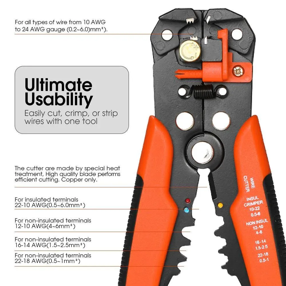 Multi-functiona Cable Wire Stripper with Cutter & Crimper Automatic Wire Stripping Pliers Crimping Tool 10-24AWG