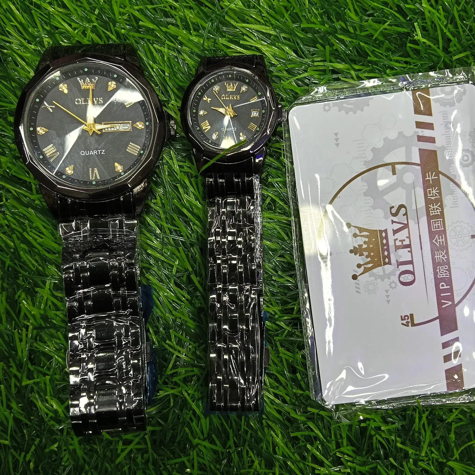 Olevs Stainless Steel fashionable Couple watches Full Black