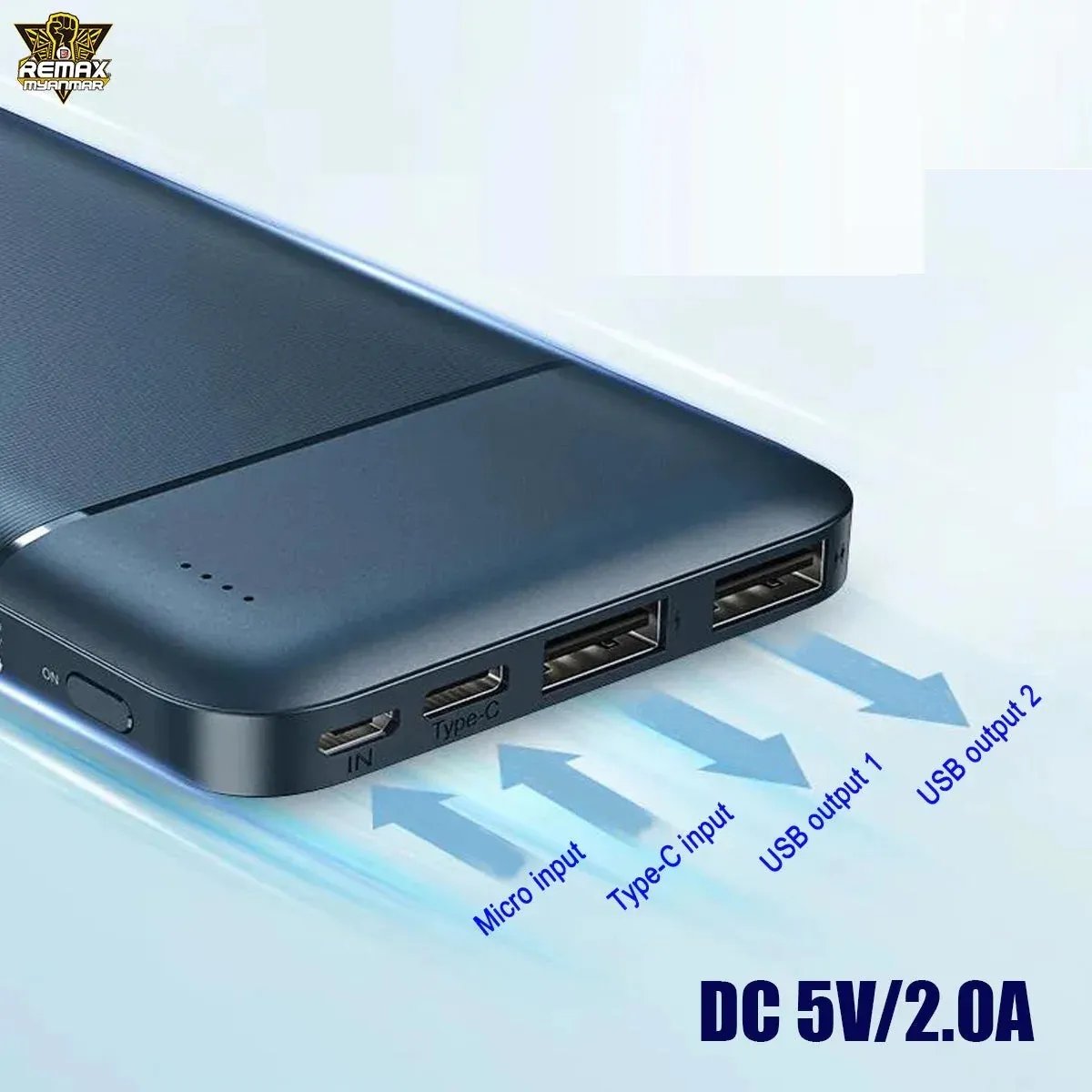 Remax RPP-96 Lango Series Dual USB Ports 10000mAh 2.4Feature :10000mAh CAPACITY100% OrjinalFAST CHARGE 2.4ON / OFF BUTTONMIRCO USB+ TYPE C INPUTDUAL USB CHARGING PORTSCAN CHARGE 2 DEVICES AT THE SAME TIME