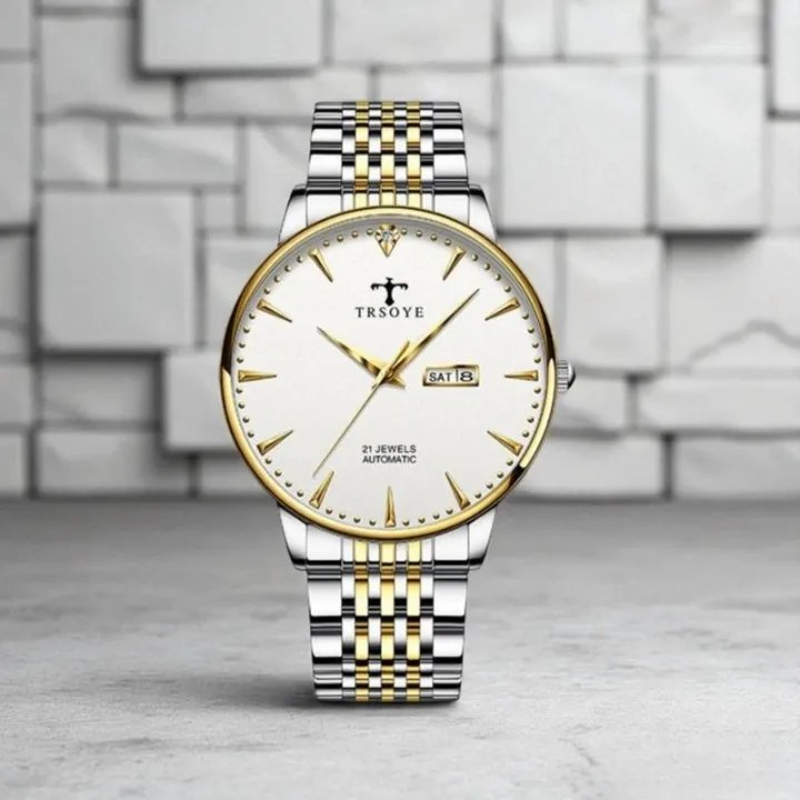Trsoye  881 Premium Water Resistant Watch আভিজাত্য আর আধুনিকতার এক অনন্য সংমিশ্রণ! ঘড়ির বৈশিষ্ট্য:30M (3 Bar) ওয়াটার রেজিস্ট্যান্ট হয়, যার জন্য এটি হাত ধোয়া বা হালকা বৃষ্টির পানি সহ্য করতে পারে, তবে সাঁতার কাটার জন্য উপযোগী নয়।এতে মিনারেল গ্লাস ব্যবহার করা হয়েছে যা সহজে স্ক্র্যাচ পড়তে দেয় না।এটি একটি Quartz (কোয়ার্টজ) মুভমেন্টের ঘড়ি, যা ব্যাটারিতে চলে এবং সঠিক সময় দেয়।এতে এনালগ ডিসপ্লে রয়েছে এবং ৩টা ঘরে সপ্তাহ (Day) এবং তারিখ (Date) দেখার উইন্ডো আছে। এটা কেন কিনবেন?স্টাইলিশ এবং রাফ ডিজাইন।মাল্টি-ফাংশনাল ফিচারস।টেকসই বিল্ড কোয়ালিটি।