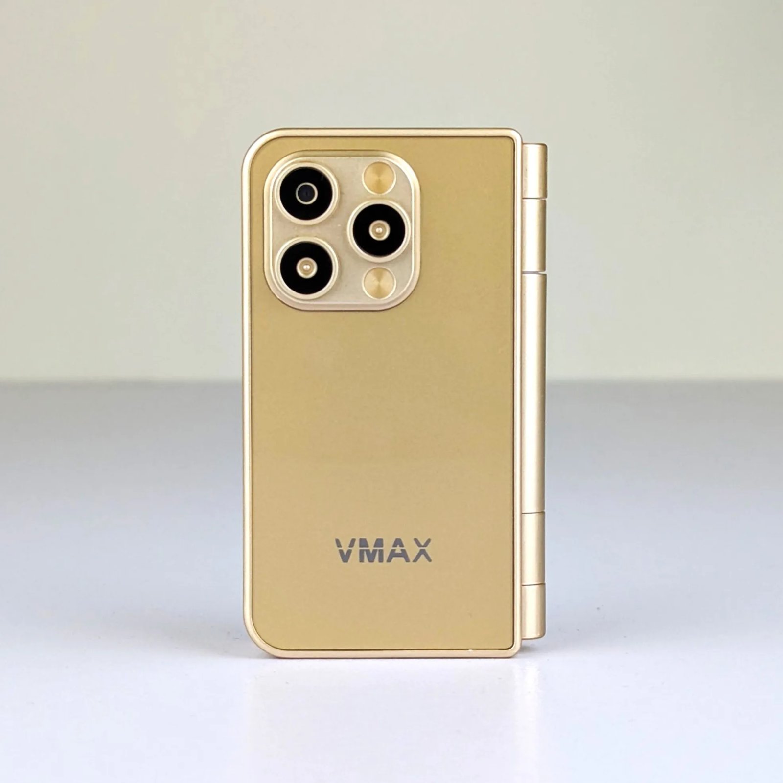 Vmax v72 flip Folding Phone Two Display GoldBrand : VmaxModel : v72 flipMain Display : 2.0 inch DisplaySecord Display : 1.77 inch DispalyMTk ChipsetSIM Card Quantity :2 Nano SIM card and 1TF cardMemory Card : 32Mb RAM , 32Mb ROM ,Maximum support : 32GB expansion Micro SD CardBattery : 2500mAh BatteryBluetooth : YesBlacklistAuto Call Record3.5 Headphone jackDual Torch LightRear HD CameraMusic, Video PlayerFM RadioCalculator, calendar, games, alarm clock, Etc.One year Service WarrantyWhats is Box :1* Vmax v72 flip Folding Phone Two Display Gold1* Type-C Charger1* Warranty Card